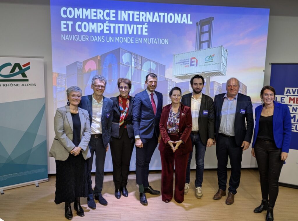 Après une prise de parole de Sophie Sidos, présidente du MEDEF Isère, sur la situation économique du département, Isabelle Job Bazille, directrice des études économiques du Crédit Agricole, est intervenue pour partager une analyse sur la montée des déséquilibres globaux dans un monde non coopératif. La table ronde qui a suivi a permis d’aborder de manière concrète les stratégies mises en œuvre par les entreprises et les institutions pour faire face aux tensions commerciales, à la régionalisation des échanges, aux enjeux environnementaux et aux transformations des chaînes de valeur.